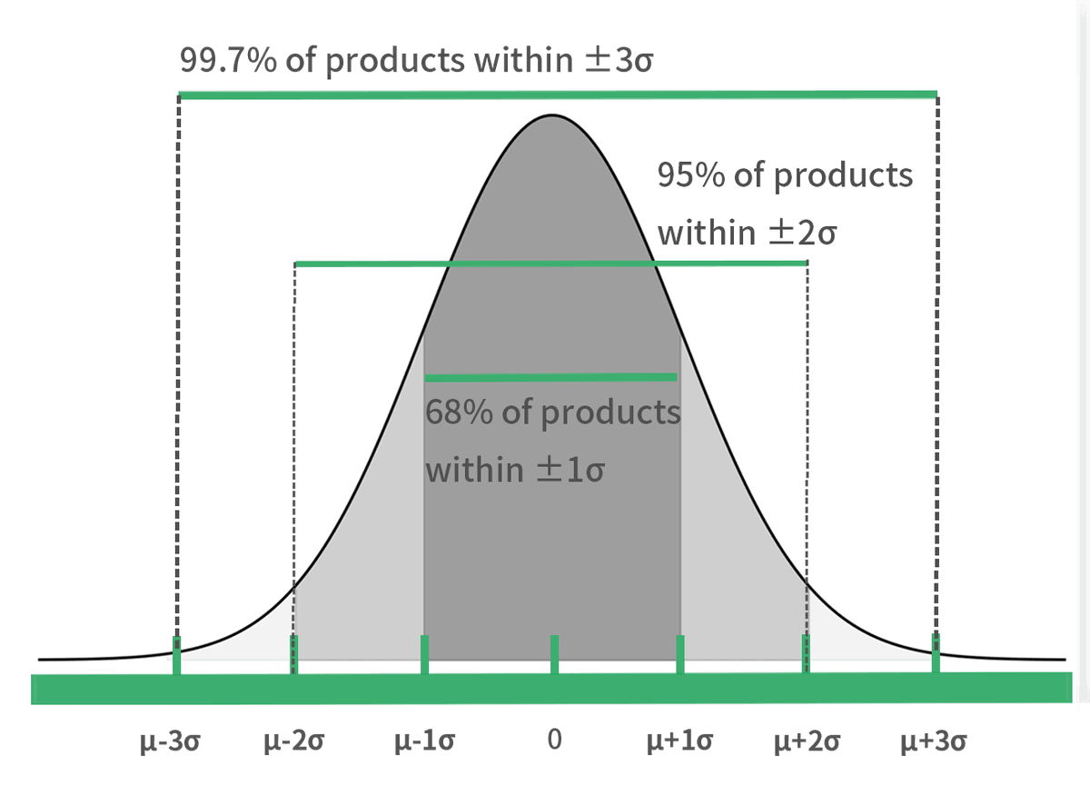 "±2" сигма (σ). И 99,7% точекданных распределены по обе стороны от стандартного значения веса, известного