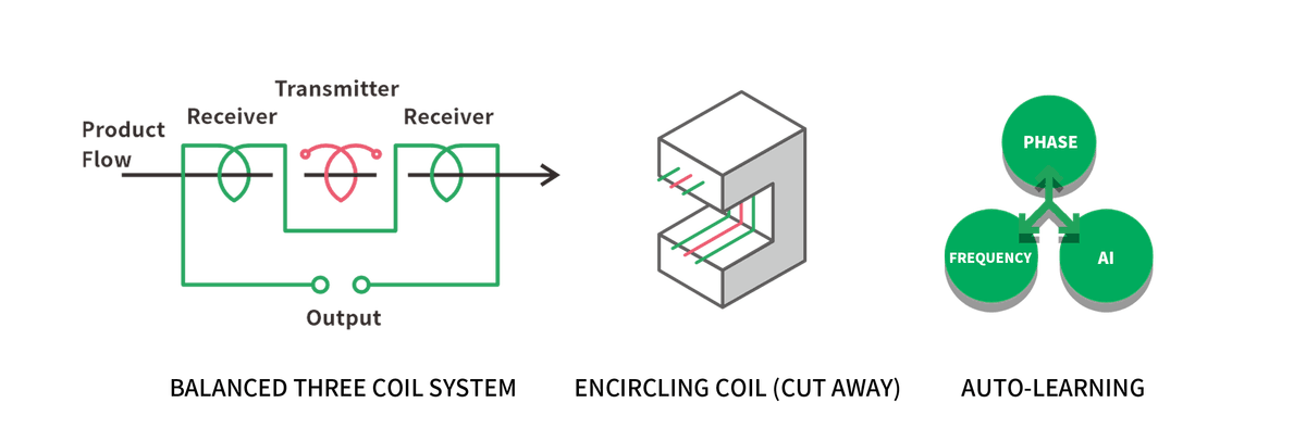 металлических загрязнений, обеспечивая оптимальную точность обнаружения.Преимущества